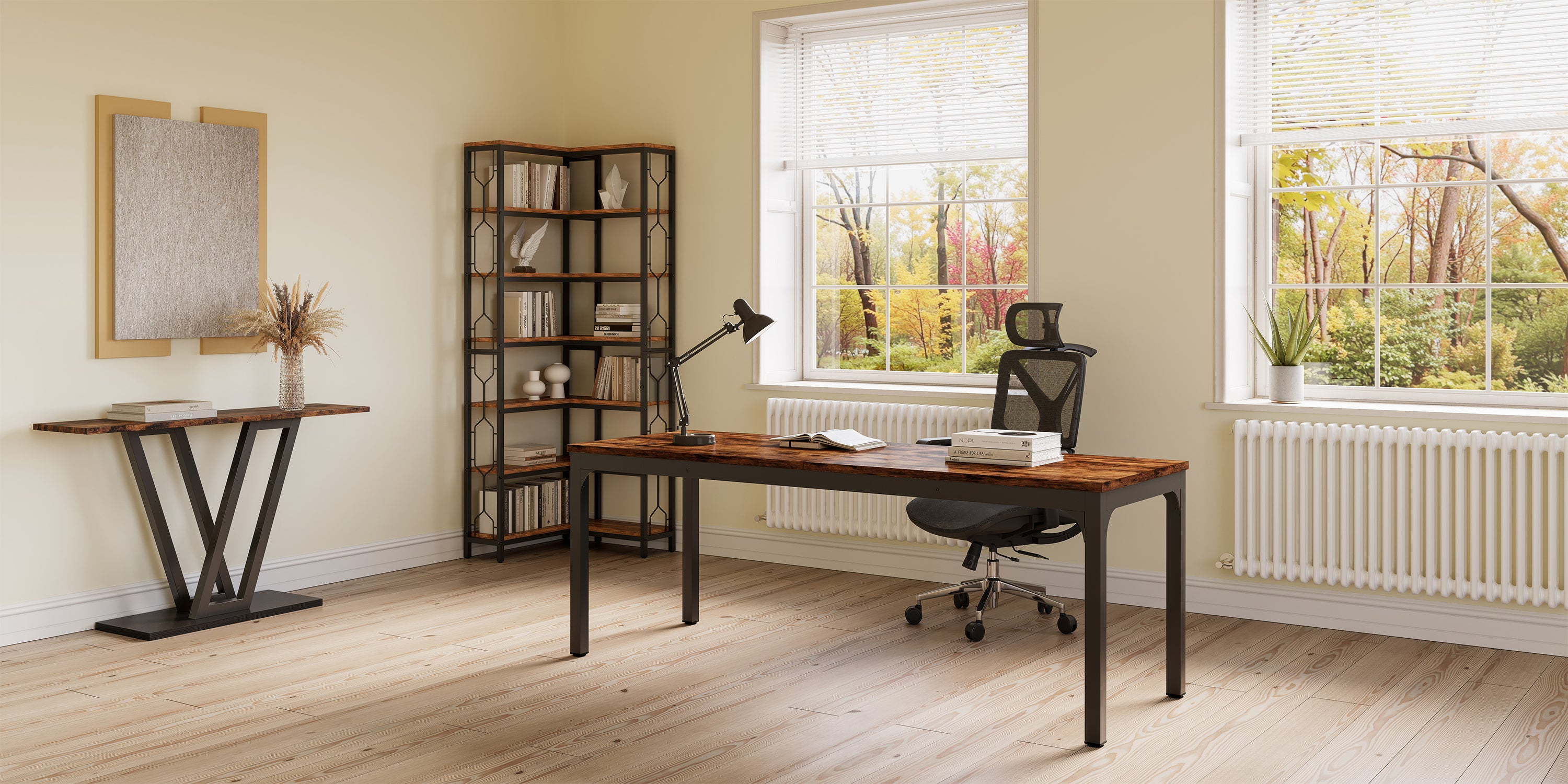 Tribesigns biedt een volledig assortiment meubelproducten aan, zoals bureaus, console tafels, banken, opbergoplossingen, boekenkasten, eettafels, receptiebalies en sideboards.