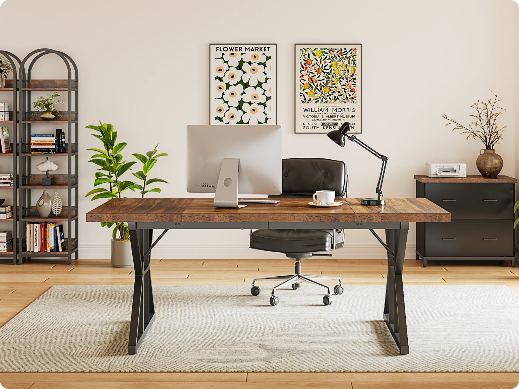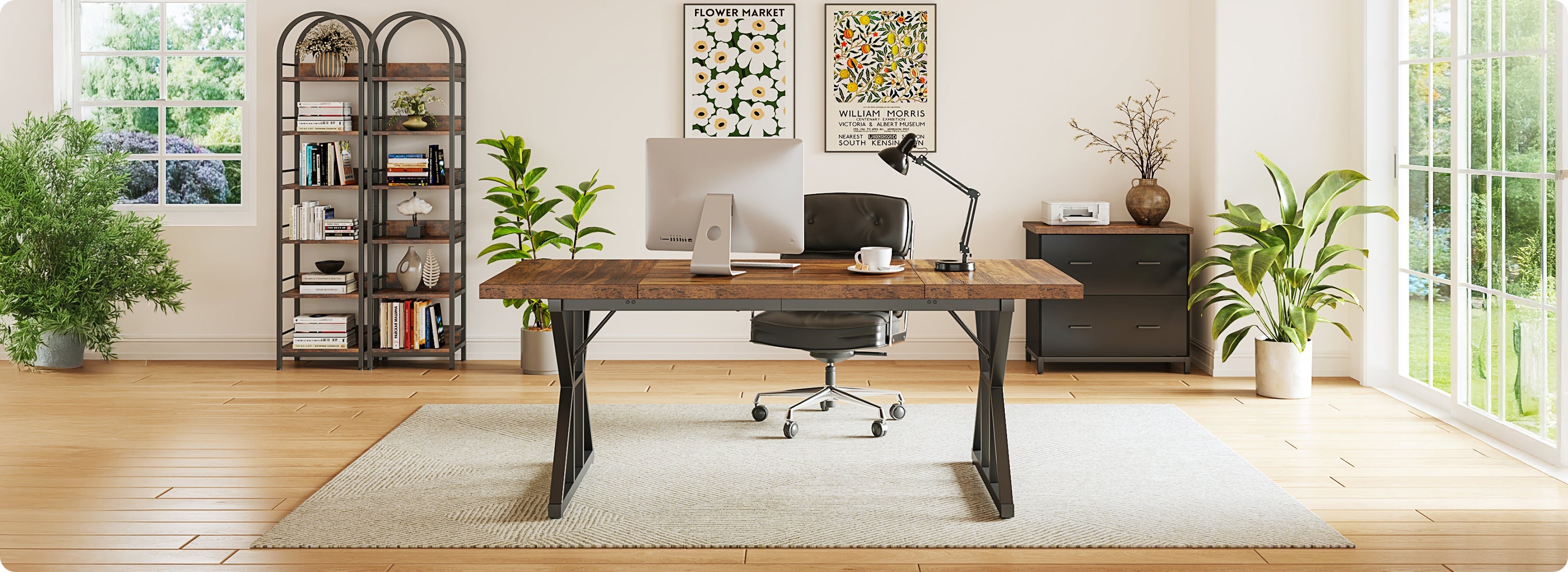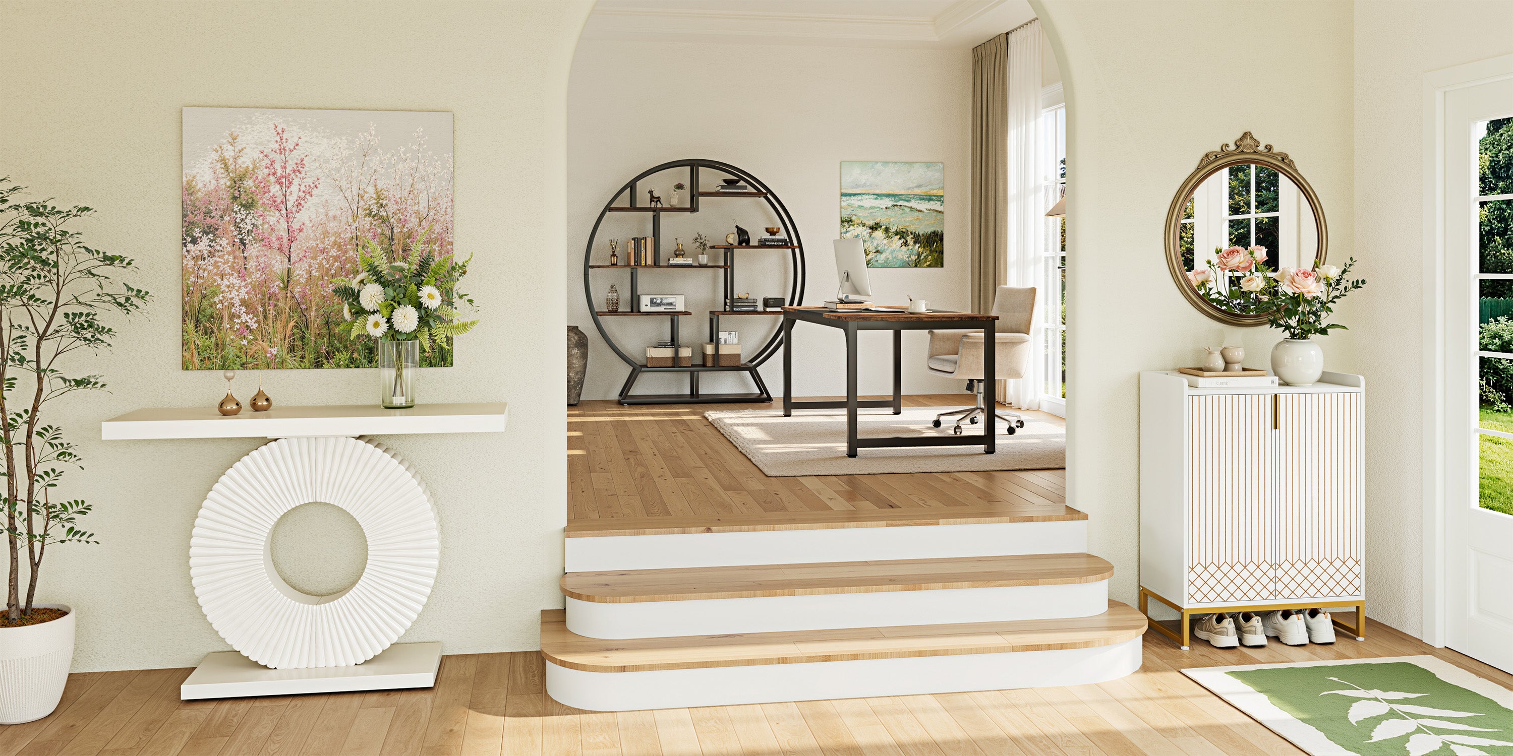 Tribesigns biedt een volledig assortiment meubelproducten aan, zoals bureaus, console tafels, banken, opbergoplossingen, boekenkasten, eettafels, receptiebalies en sideboards.