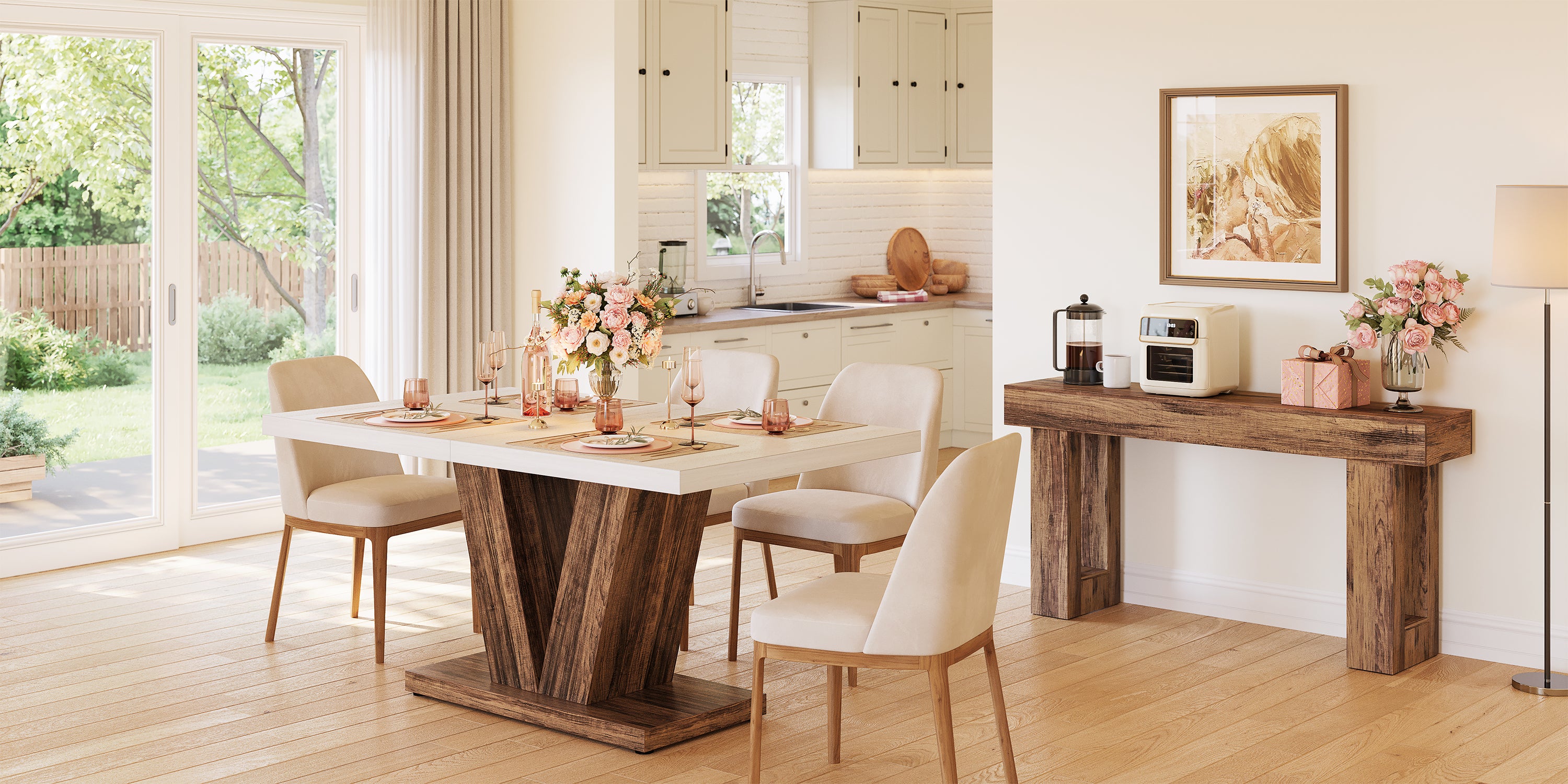 80 cm Tribesigns Eettafel met Houten Lattenvoet en Voetsteun