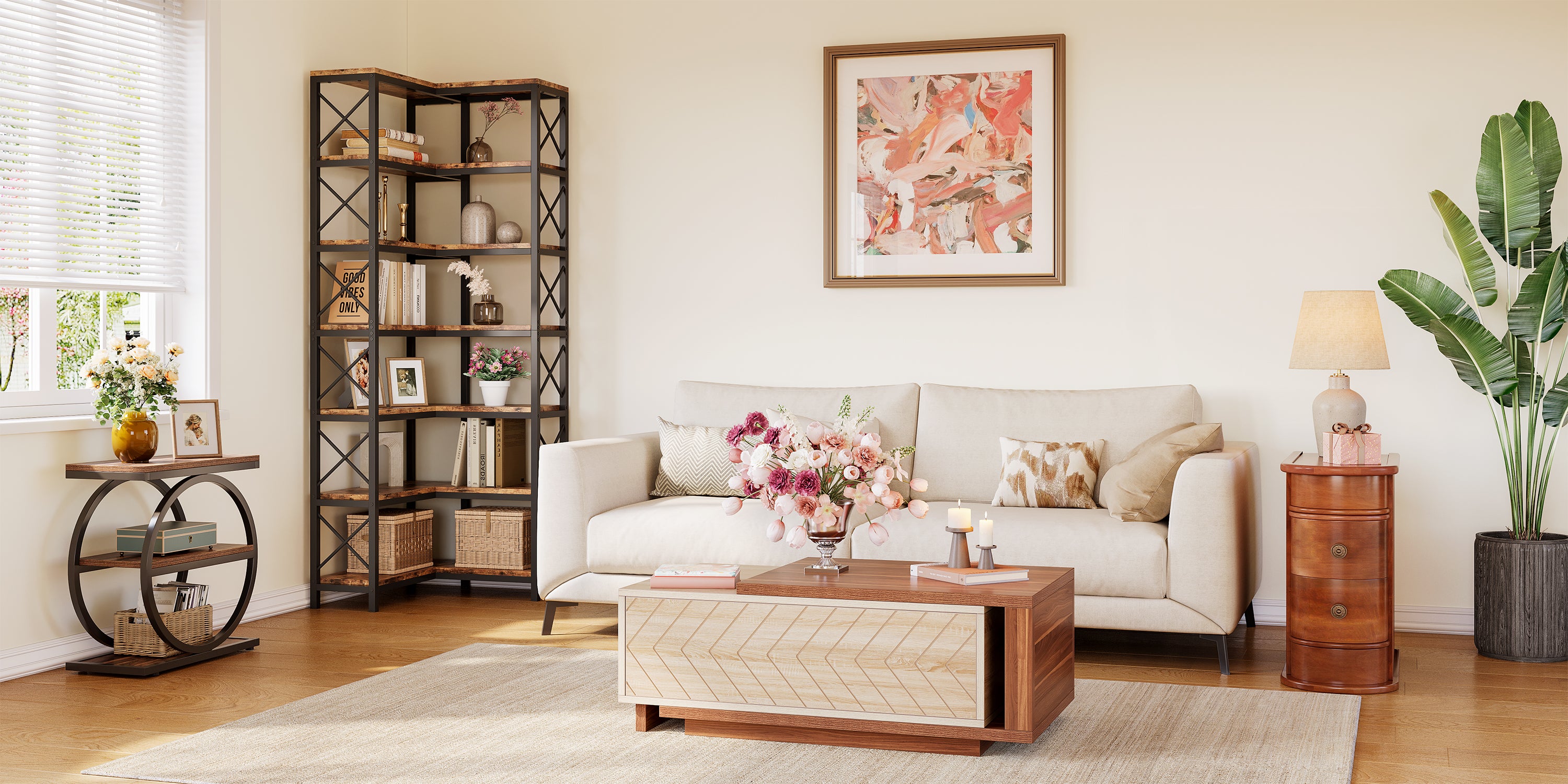 Tribesigns biedt een volledig assortiment meubelproducten aan, zoals bureaus, console tafels, banken, opbergoplossingen, boekenkasten, eettafels, receptiebalies en sideboards.